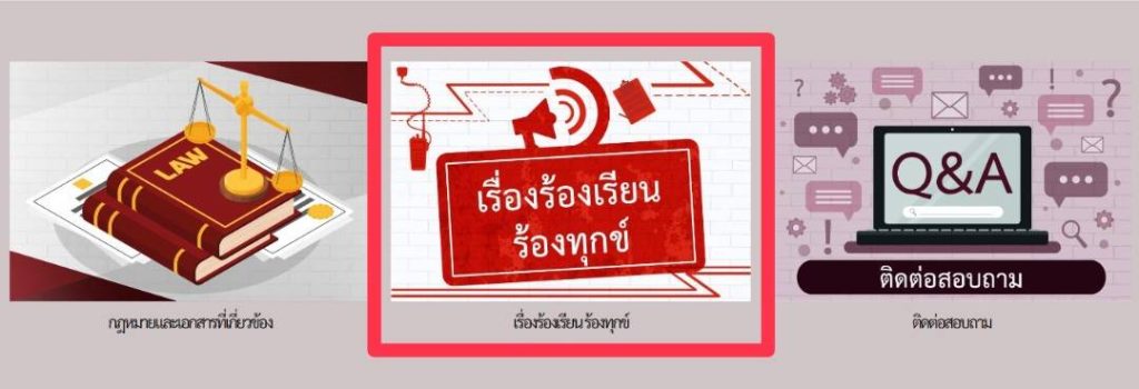 เมนู ร้องเรียน ร้องทุกข์ อีกส่วนหนึ่ง อยู่ “ล่างสุด” บริเวณ “หน้าแรกของเว็ปไซต์”