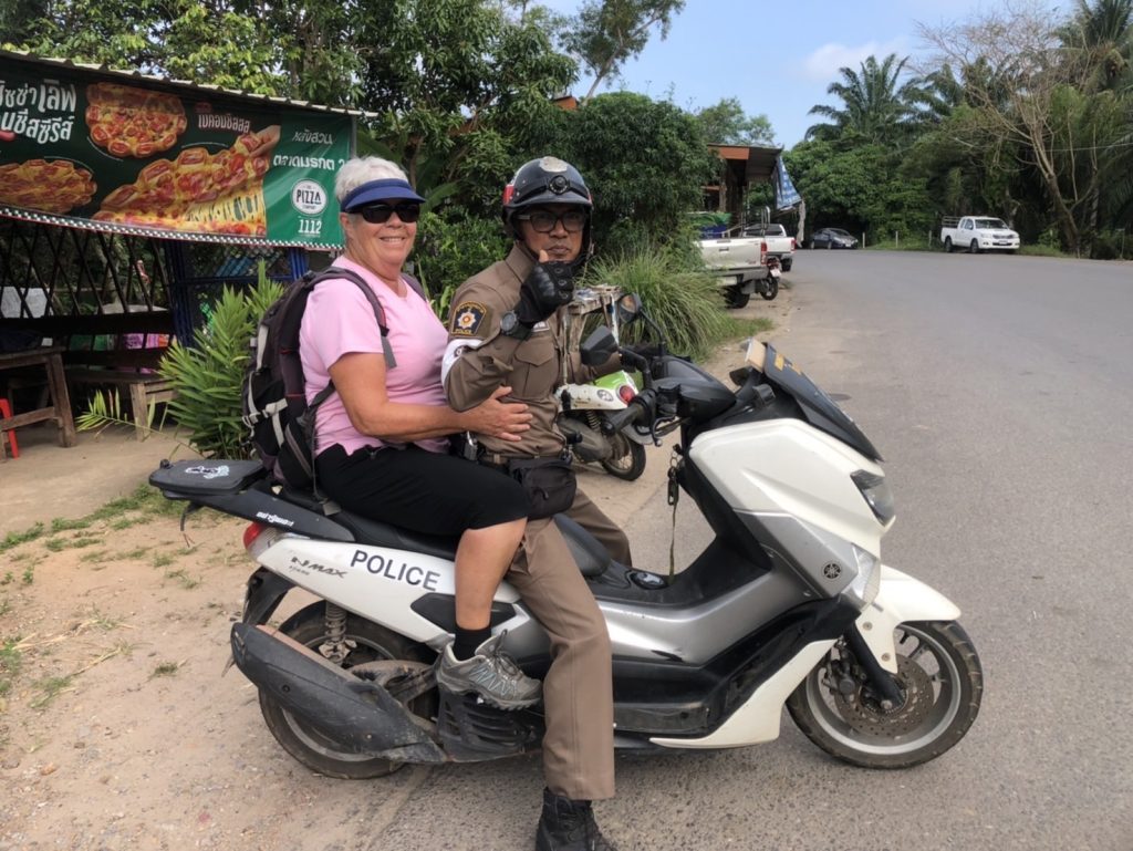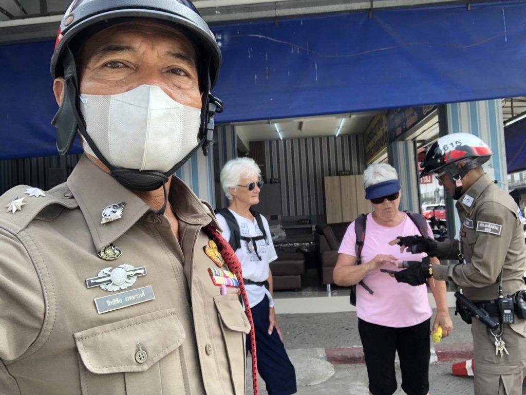 บริการประชาชน ช่วยเหลือนักท่องเที่ยวชาวฝรั่งเศส เพื่อไปพักผ่อนพื้นที่ปากน้ำหลังสวน ได้พูดคุย ซักถามผ่านแอปพลิเคชันแปลภาษา เป็นที่เข้าใจ สร้างภาพลักษณ์ให้ตำรวจไทยได้เป็นที่พอใจ
