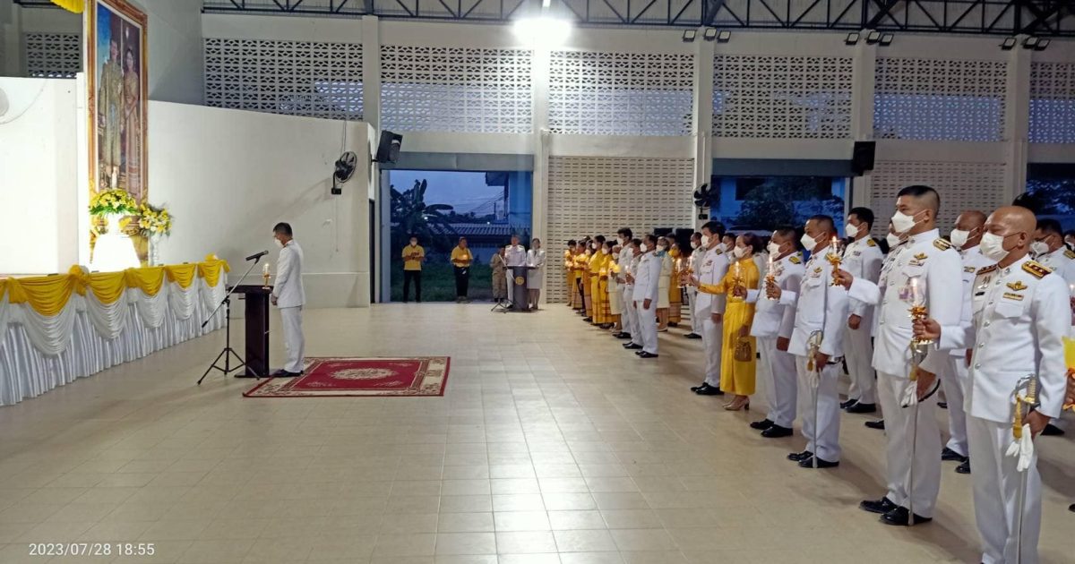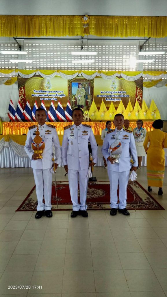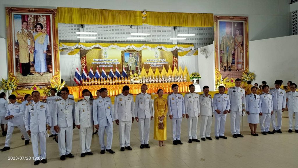 พ.ต.ท.ธีรนันท์ ชุมวรฐายี รอง ผกก.สส.สภ.หลังสวน พร้อมข้าราชการตำรวจ ร่วมพิธีวางพานพุ่มและจุดเทียนชัยถวายพระพร เนื่องในโอกาสวันเฉลิมพระชนมพรรษาพระบาทสมเด็จพระเจ้าอยู่หัว 28 กรกฎาคม 2566