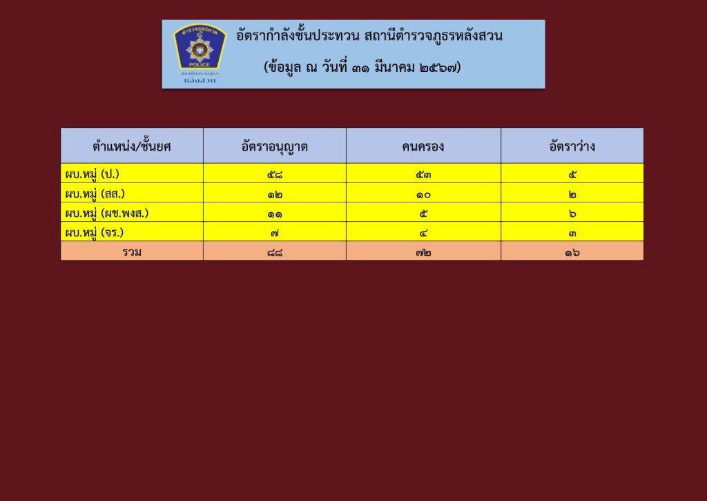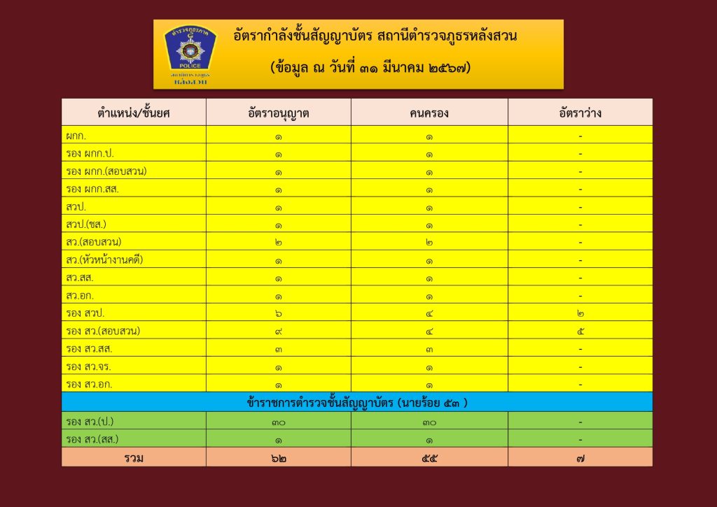 อัตรากำลังของสถานีตำรวจ