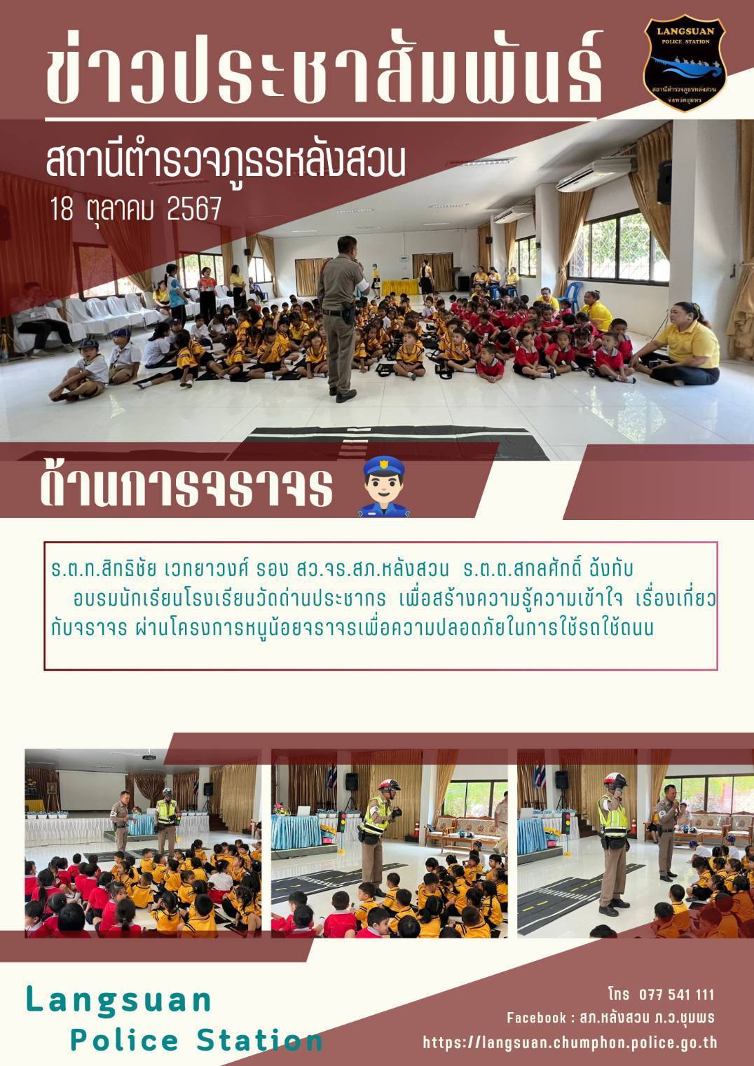 เมื่อวันที่ 18 พ.ค.67 เวลาประมาณ 09.00 น. ร.ต.ต.สกลศักดิ์ ฉ้งทับ รอง สว(ป.)สภ.หลังสวน ปฏิบัติงานจราจ