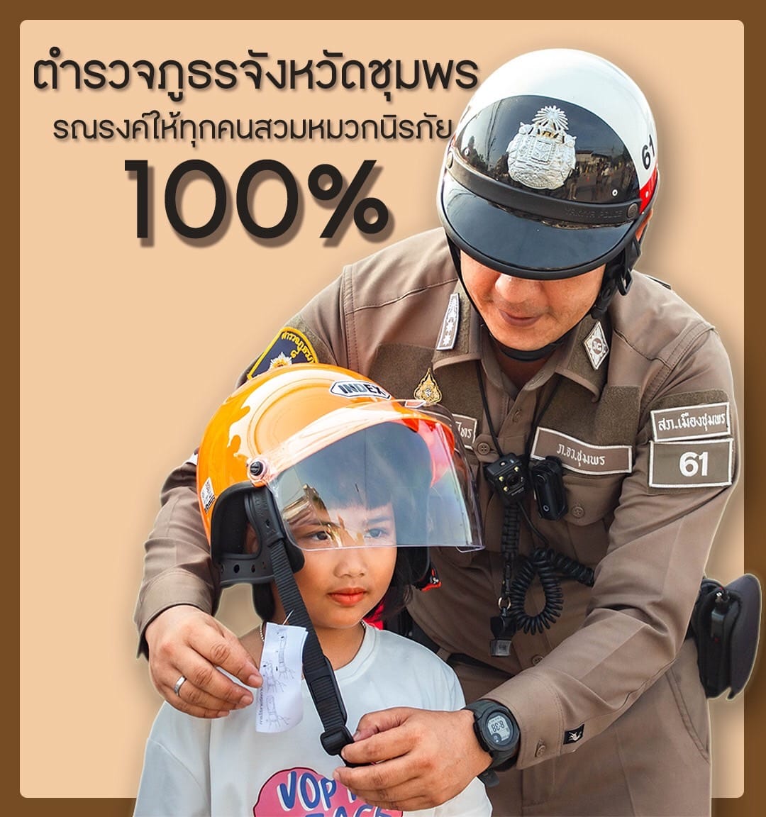 สงกรานต์สุขใจ ไร้อุบัติเหตุชาวชุมพร ขับขี่ปลอดภัย สวมหมวกนิรภัย 100%