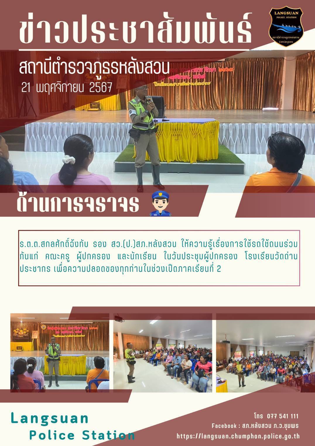 ให้ความรู้การจราจร ณ โรงเรียนวัดด่านประชากร