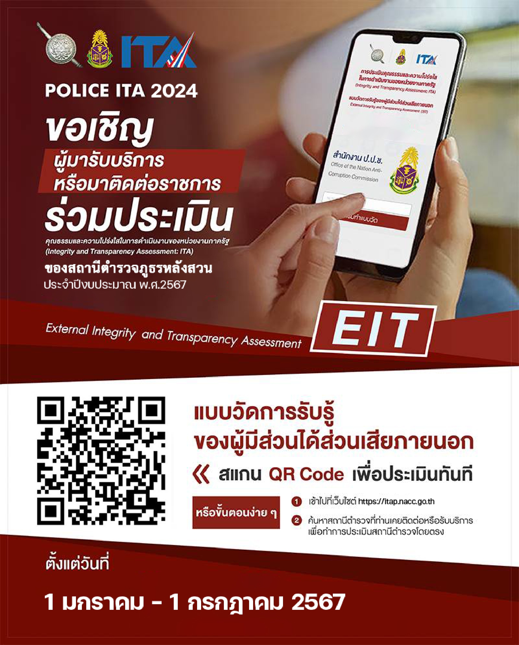 สถานีตำรวจภูธรหลังสวน จังหวัดชุมพรขอเชิญชวน ผู้มารับบริการ / มาติดต่อ สถานีตำรวจ ร่วมประเมินแบบวัดกา